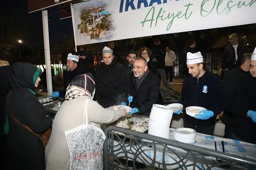 Eyüpsultan Belediye Başkanı Dr. Mithat Bülent Özmen, meydanda yurttaşların Berat Kandili’ni tebrik ederek etli pilav ikramında bulundu.