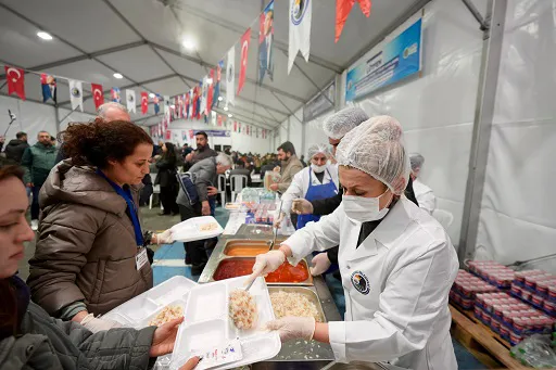 Koşuyolu Kalp Hastanesi Otoparkı’nda kurulan sabit iftar ve sahur alanı; özellikle hasta yakınları, sağlık çalışanları ve iftar saatinde evine yetişemeyen vatandaşlar için önemli bir buluşma noktası oldu. Kartal Belediyesi personeli tarafından özenle hazırlanan iftar menüleri, düzenli organizasyon ve titiz bir planlamayla vatandaşlara hizmet verdi.