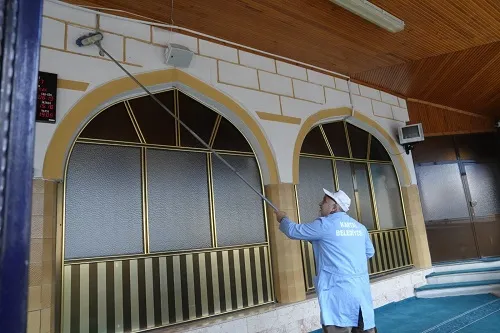 İbadethanelerin içi dışında çevresinde de çalışmaları yürüten ekipler, hem ot temizliğihem de yıkama gibi işlemleri de gerçekleştirdi. Koruyucu kıyafetler giyen ekipler, ot biçme ve temizlik işlemleriyle çevre temizliği yaparken, camilerin avluları da basınçlı su kullanılarakyıkandı. Bayrama hazırlık kapsamında çalışmalar devam ederken, genel temizlik çalışmaları da ilçe genelinde titizlikle devam ettiriliyor.