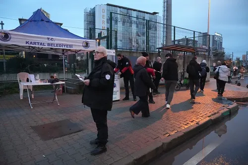 Sabahın erken saatlerinden itibaren göreve başlayan Kartal Belediyesi Afet İşleri ve Risk Yönetimi Müdürlüğü ekipleri ile Arama Kurtarma ekipleri gün boyunca vatandaşlara önlemler konusunda bilgi verdi.