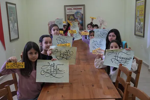 Masal Müzesi’nde düzenlenen bir diğer etkinlik olan Ebru Üzeri Kaligrafi Atölyesi oldu. 6-10 yaş grubundaki çocuklar sanatla buluştu. 12.00-13.00 ve 13.30-14.30 saatlerinde gerçekleştirilen atölye, 20 kişilik kontenjanıyla çocukların geleneksel sanatlarla tanışmasına olanak sağladı.