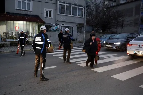 Sabah erken saatlerde görev yerlerine gelen ekipler, yoğun trafiğin bulunduğu bölgelerde öğrencilerin güvenli bir şekilde karşıdan karşıya geçmelerini sağladı.