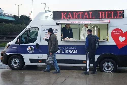 Soğuk ve karlı havadan vatandaşların olumsuz etkilenmemesi amacıyla ilçe genelinde çalışmalarına aralıksız devam eden Kartal Belediyesi, bir yandan da ilçenin yoğun olarak kullanılan güzergâhlarında, soğuk ve karlı hava nedeniyle zorluk çeken vatandaşların bir nebze olsun içlerini ısıtmak için, ‘Mobil İkram Aracı’ ile sıcak çorba ve çay ikramında bulunuyor. Sabahın erken saatlerinden itibaren Kartal’da özellikle ulaşım aksının en yoğun olduğu Kartal metro ve Soğanlık metro durakları çıkışlarında hizmet vermeye başlayan ekipler, işlerine giden ve yoldan geçen vatandaşları sıcak tutmak amacı ile çorba ve çay ikramında bulunuyor. Soğuk havada güler yüzlü ve sıcak bir mola sunan bu hizmet, Kartallılar tarafından memnuniyetle karşılanırken sıcak çorba ve çay molası ile günlük işlerinin bir nebze olsun kolaylaştığını dile getiren vatandaşlar, kendilerine sunulan hizmetten ötürü Kartal Belediye Başkanı Gökhan Yüksel’e ve belediye çalışanlarına teşekkür etti. Kartal Belediyesi kış ayları süresince sosyal belediyecilik anlayışıyla vatandaşların yanında olmaya devam edecek.