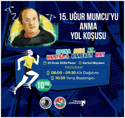 25 Ocak 2026 Pazar günü Kartal Meydanı’nda düzenlenecek koşu, saat 10.30’da start alacak. Yarış öncesinde sporcular için 08.00 – 09.30 saatleri arasında kit dağıtımı yapılacak. Lisanslı ve amatör sporcuların katılımına açık olan organizasyonda, katılımcılar 10 kilometrelik parkurda Uğur Mumcu’nun anısı için koşacak.